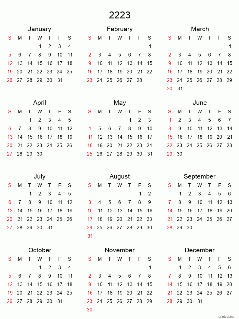 Check out printable calendars for 2222 2223 2224.