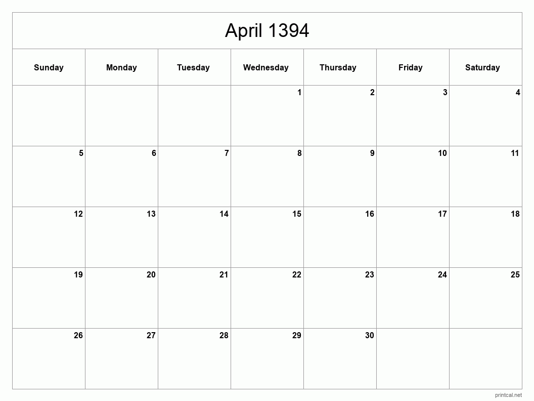 Download Classic Blank Sheet calendar for April 1394 to help you with your productivity and manage your time efficiently. To change first day of the week to Monday, click here.