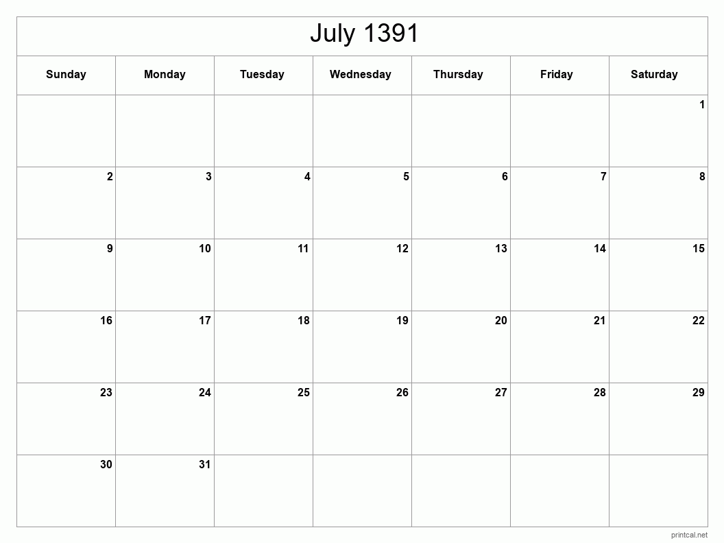 Printable July 1391 Calendar (Classic Blank Sheet)