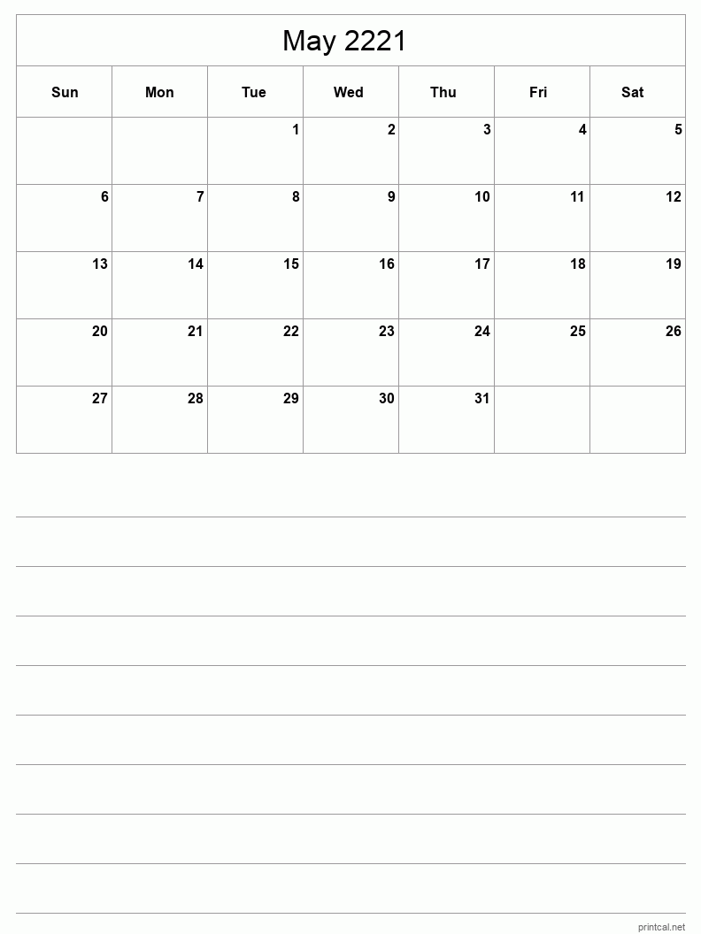 - May 2221 Calendar - Classic Blank Sheet