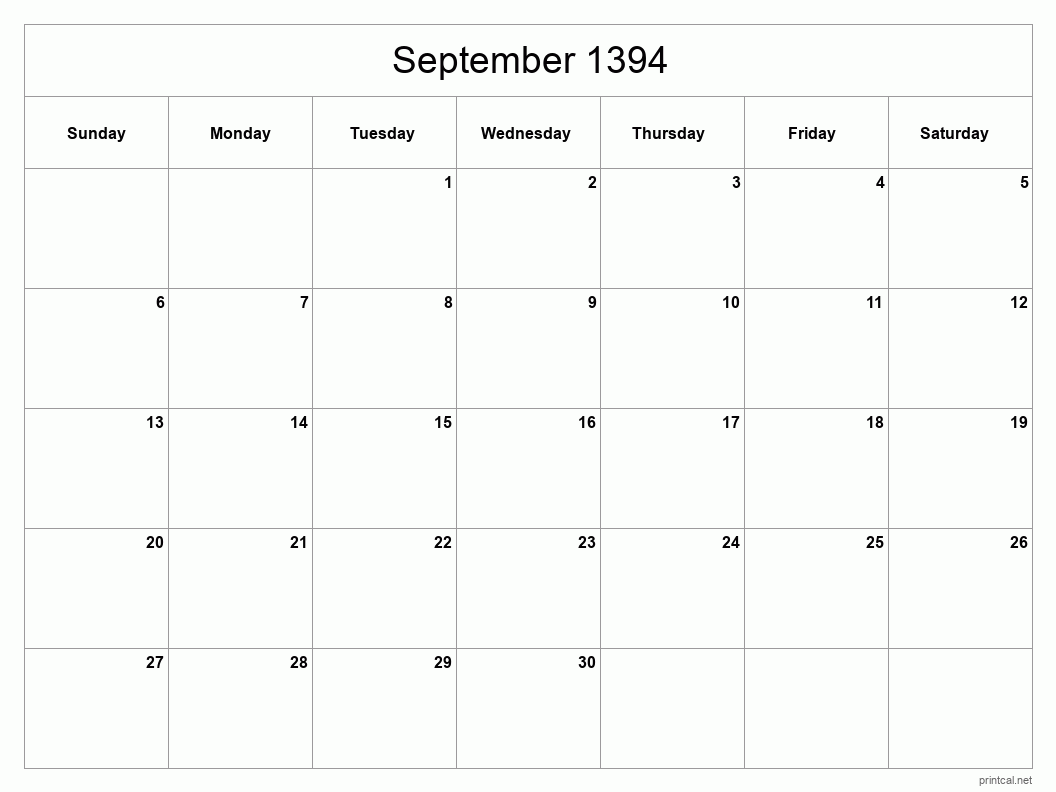 Download Classic Blank Sheet calendar for September 1394 to help you with your productivity and manage your time efficiently. To change first day of the week to Monday, click here.